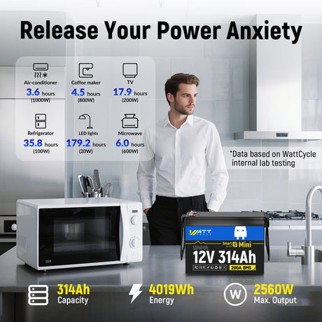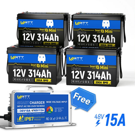Sale price From $19999 Regular price $32999Unit price /UnavailableWattcycle 12V 314Ah Mini Bluetooth LiFePO4 Battery for RV, Marine, Solar & Off-Grid
