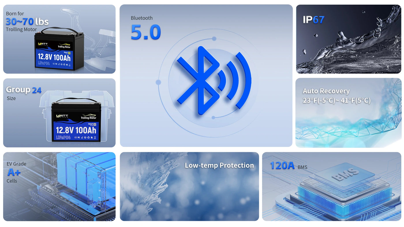 12V 100Ah LiFePO4 Battery for Trolling Motors Kit