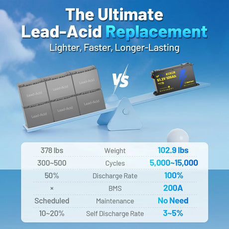 WattCycle LiFePO4 battery can be used for 4,000-20,000 life cycles.