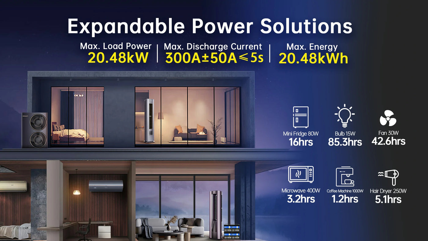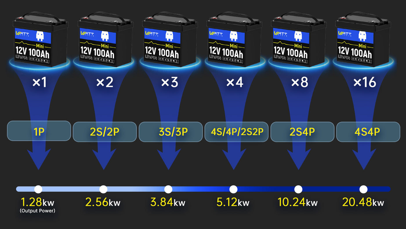 - Cutting-edge Technology: Manufactured by EVE, a high-end lithium battery brand, the Grade A+ cells in our 12 volt battery ensure a lifespan of up to 10 years, withstand up to 15,000 cycles, and support a 4S4P configuration with a capacity of up to 20.48kWh.