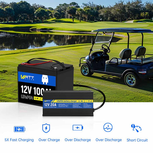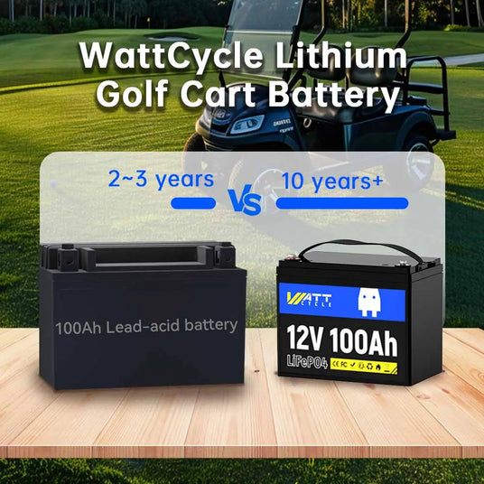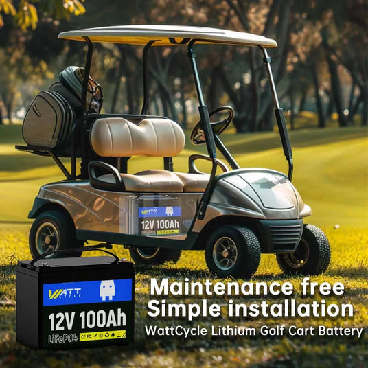 We recommend using WattCycle's 12V golf cart batteries in a series connection to power your 36-volt or 48-volt golf cart. This setup allows you to achieve the required voltage while providing greater flexibility. In the event of a battery failure, only the affected unit needs replacing, rather than the entire battery pack. This approach reduces maintenance costs, minimizes downtime, and ensures reliable performance, helping you save money on the long-term upkeep of your golf cart.