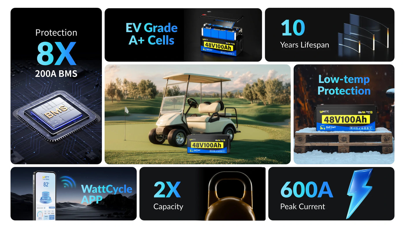 WattCycle 48V 100Ah Lithium Battery – Specially Designed for Golf Carts