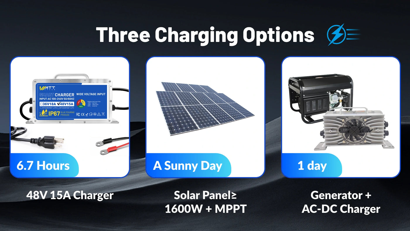 While the WattCycle 48V 100Ah lithium battery is specially engineered for golf carts, its versatility extends far beyond the course. This powerful unit also performs exceptionally well in solar energy systems, industrial battery storage, RV power banks, marine applications, and off-grid setups—offering dependable energy wherever it’s needed.