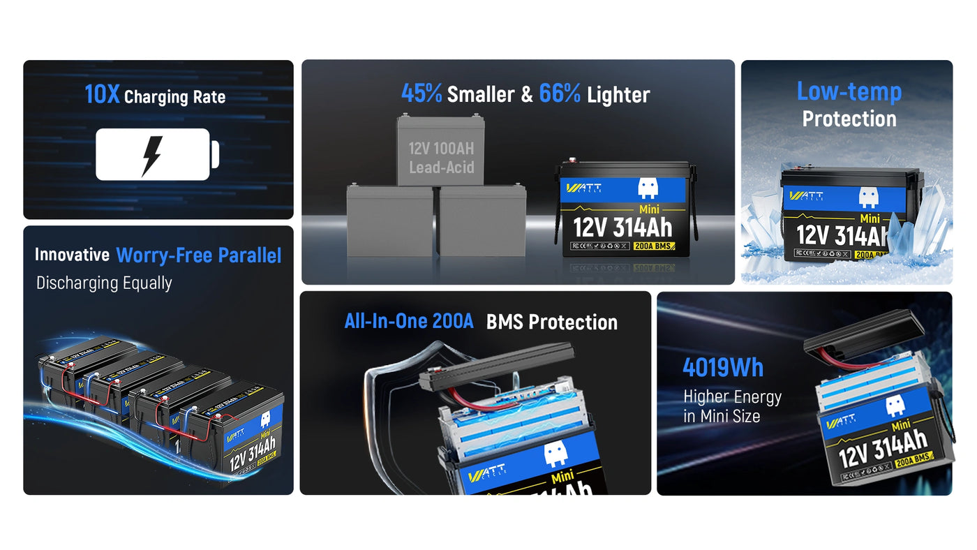 ![[Bluetooth-Free Version] Wattcycle 12V 314Ah Mini LiFePO4 Deep Cycle Battery](http://www.wattcycle.com/cdn/shop/files/12V_314Ah_mini_1x_5.webp?v=1765882224&width=1214)