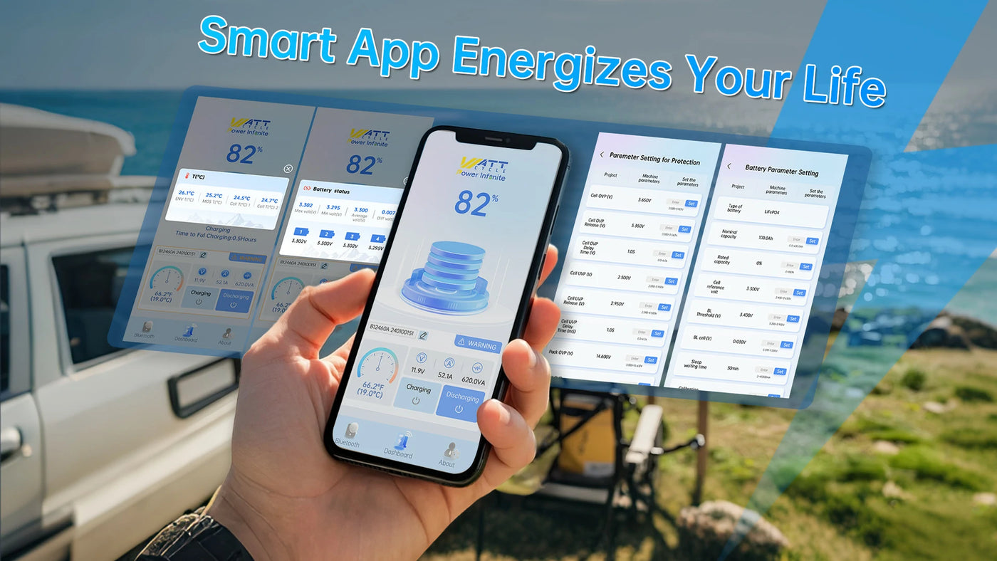 ⚡Smart Bluetooth Monitoring: Track real-time voltage, state of charge (SoC), temperature, and health via WattCycle app.