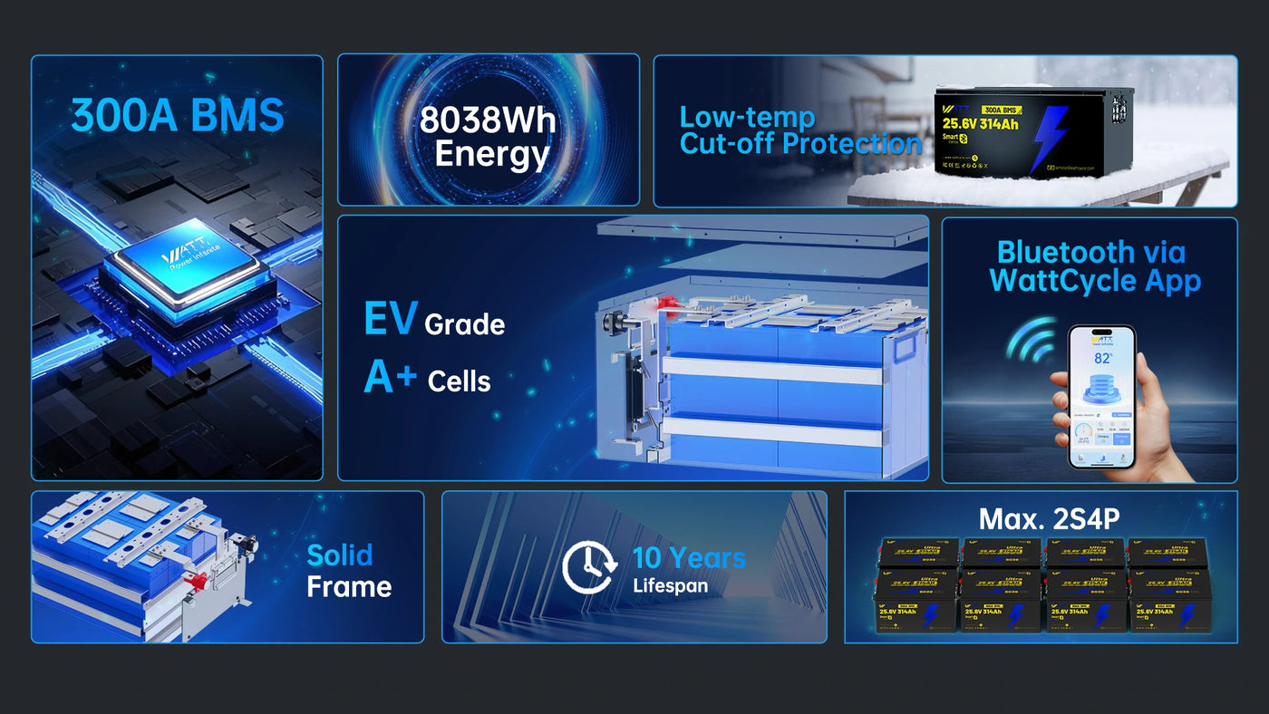 ⚡Massive Capacity: 314Ah (25.6V) | ~8kWh energy storage in a single unit.