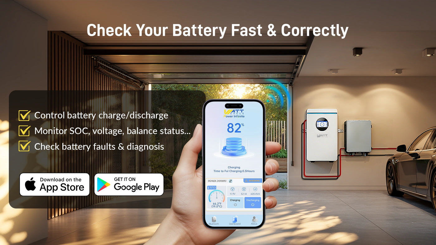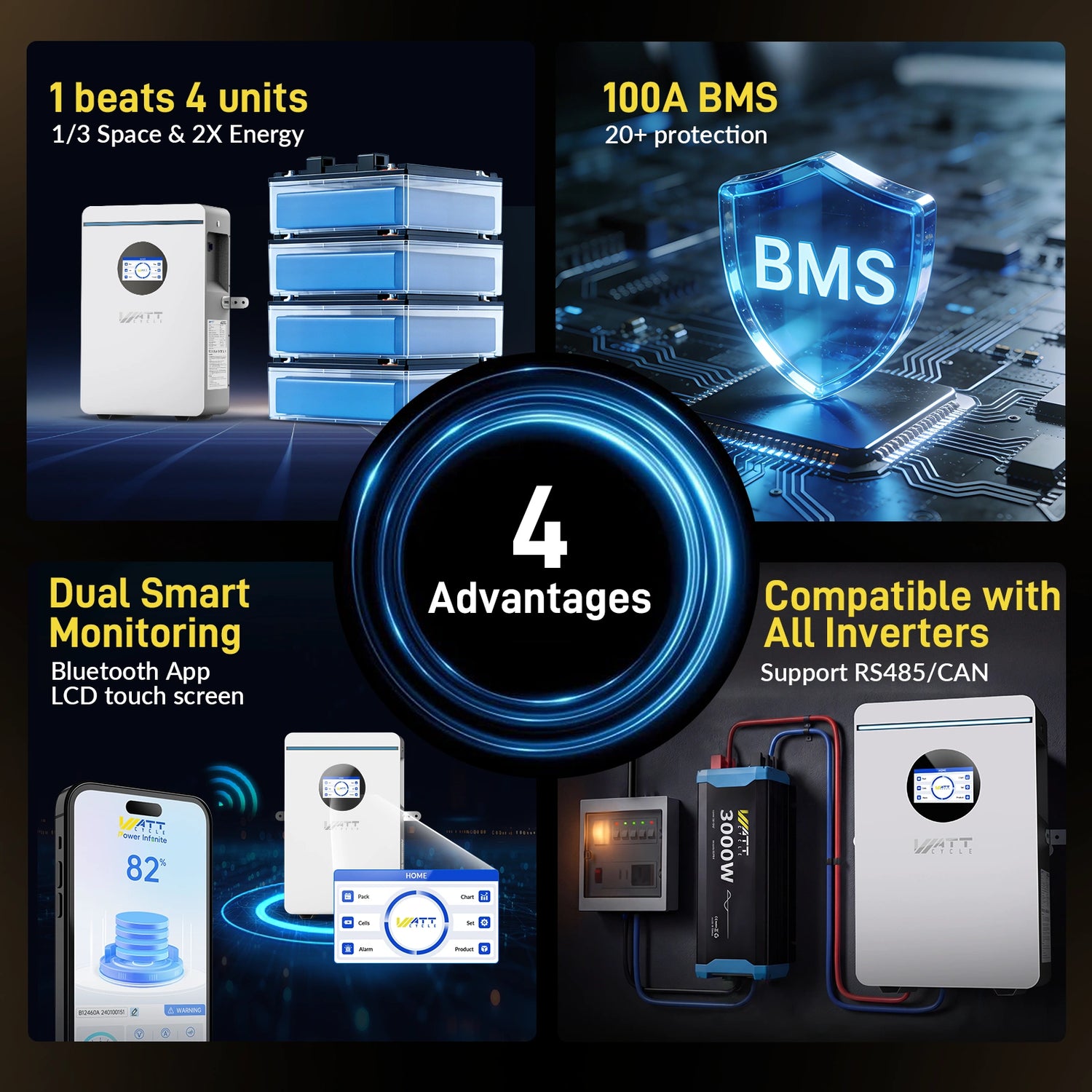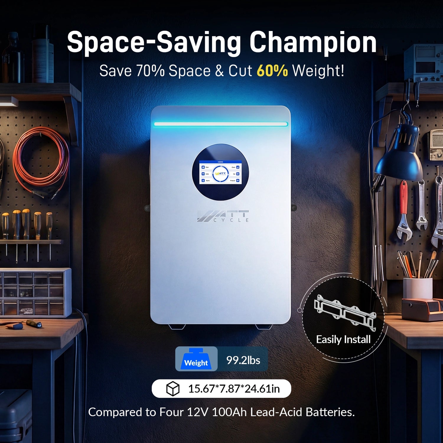 ⚡️Launch Early Bird: $799⚡️WattCycle 5.12kWh 48V 100Ah Wall-Mounted LiFePO4 Battery with Smart BMS, Bluetooth, Active Balancing & Communication