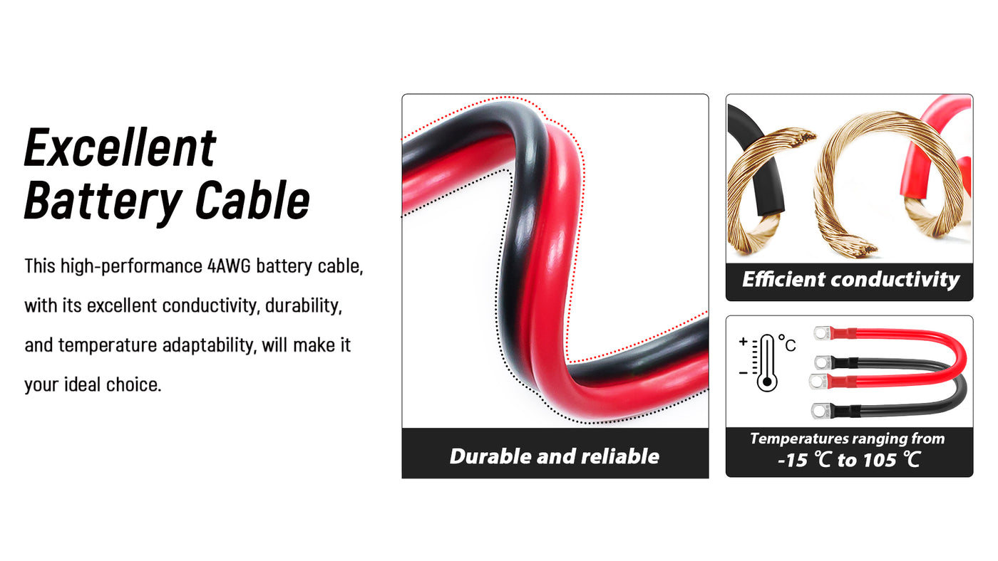 • High Performance: 4 AWG Wire, perfectly suited for 3/8" bolts and SAE #4 copper wire connectors