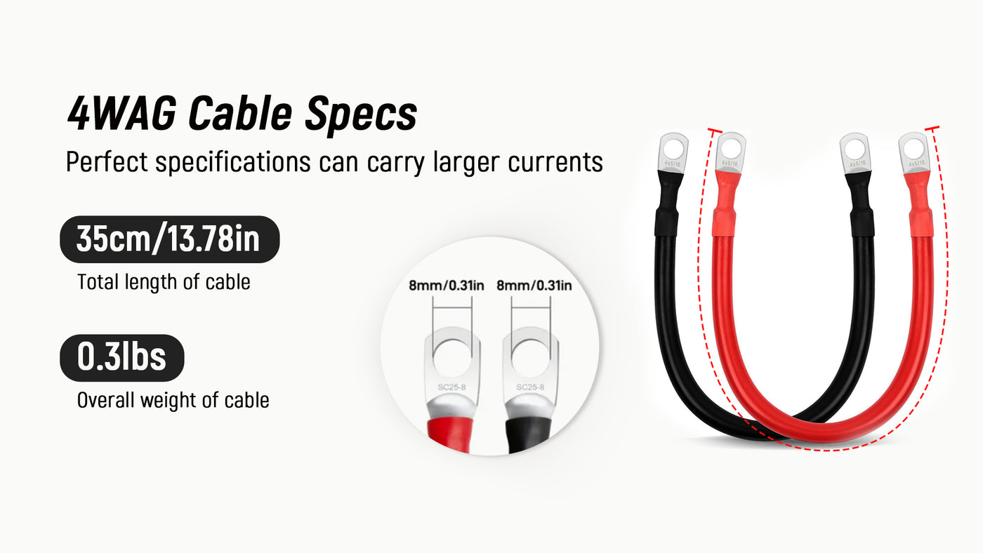 • Performance: 4 AWG Wire, perfectly suited for 3/8" bolts and SAE #4 copper wire connectors